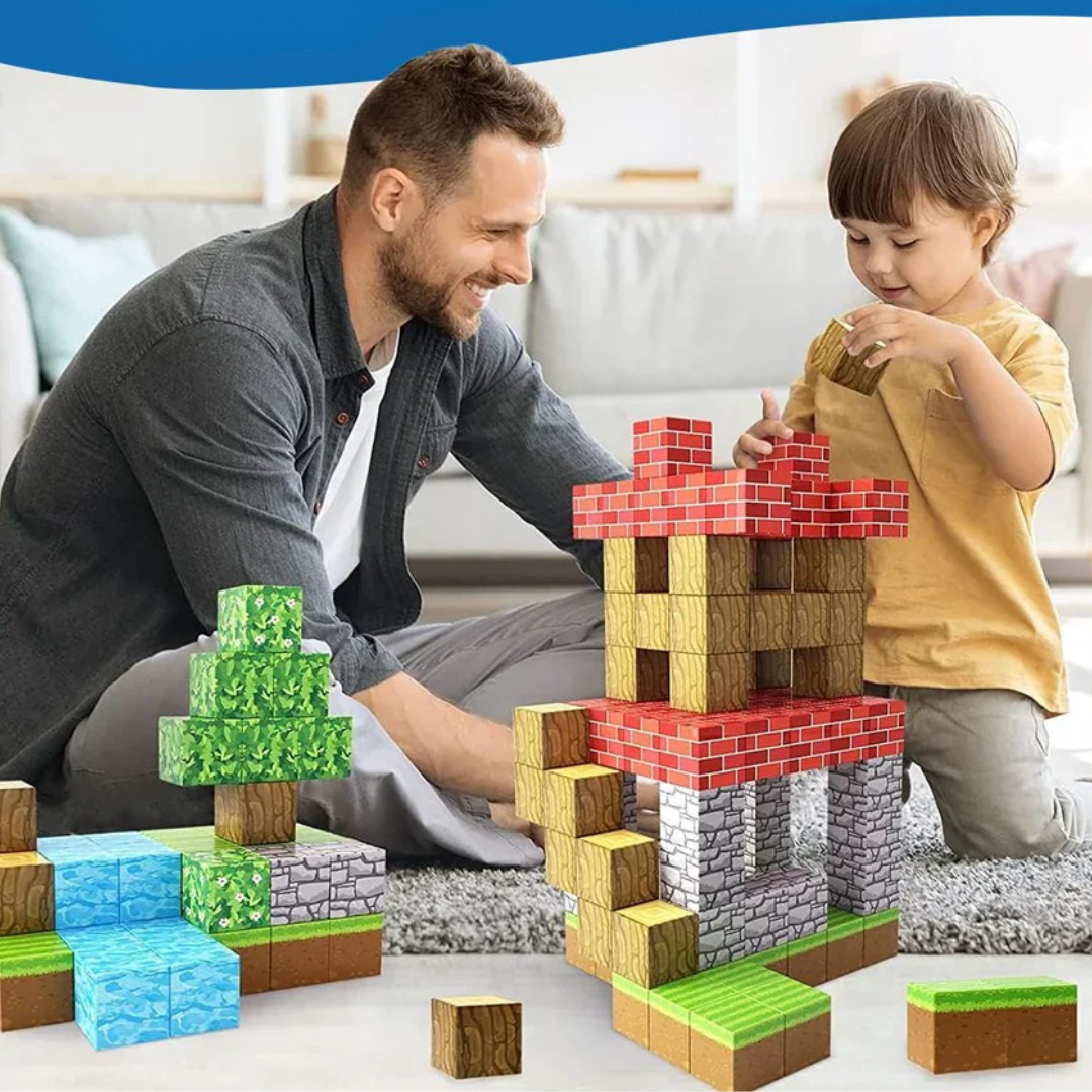 Комплектът е проектиран за деца от 3 години нагоре. Магнитните блокчета имат размер 2.5 см, което предотвратява риск от задавяне – безопасни за по-малки деца, а за по-големи остават занимателни и предизвикателни.